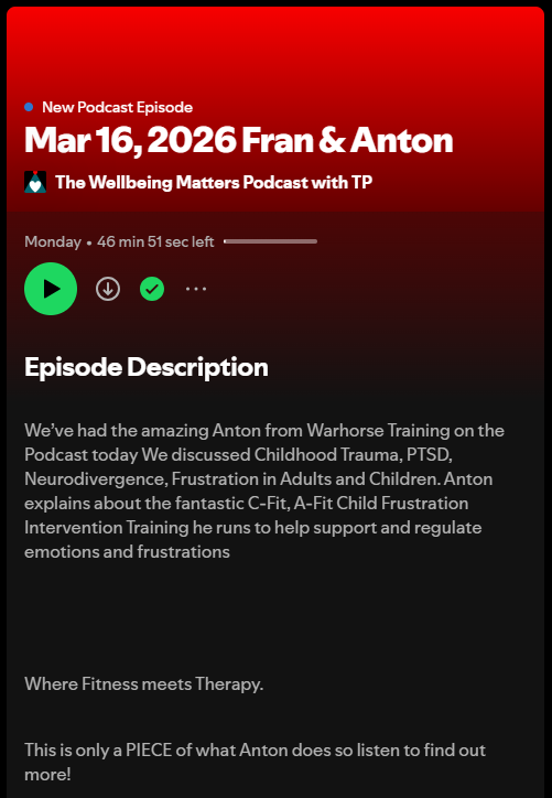 â As featured on The Wellbeing Matters Podcast discussing trauma, neurodivergence, and emotional regulation through training.